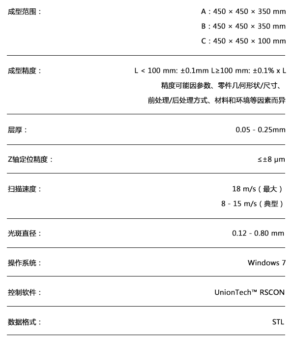 是一款工业级光固化3D打印机,它最大支持450×450×350mm的设计模型制作。相比Lite450,它可变光斑提升效率到400%,具备工艺参数全自动设置的特点,工艺技术精度更高,能够快速,单件、小批量地制造零件。
