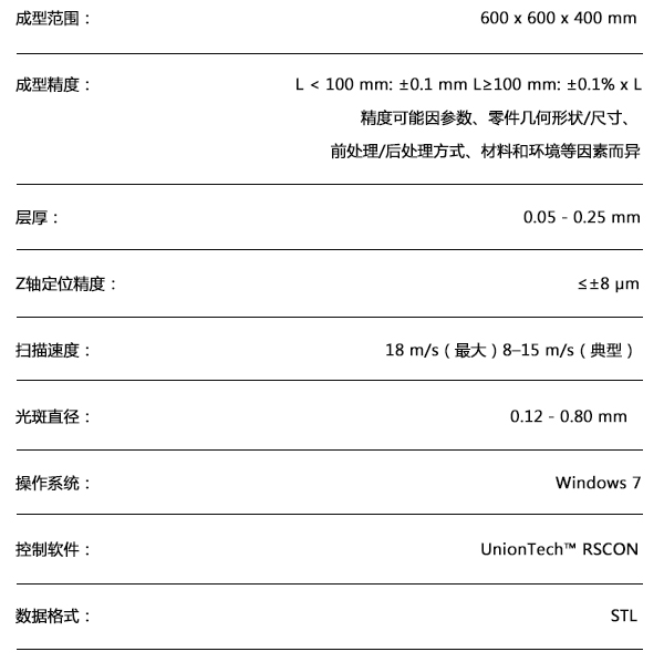 是一款工业级光固化3D打印机,它最大支持600×600×400mm的设计模型制作。相比Lite600,它可变光斑提升效率到400%,具备工艺参数全自动设置的特点,工艺技术精度更高,能够快速,单件、小批量地制造零件。